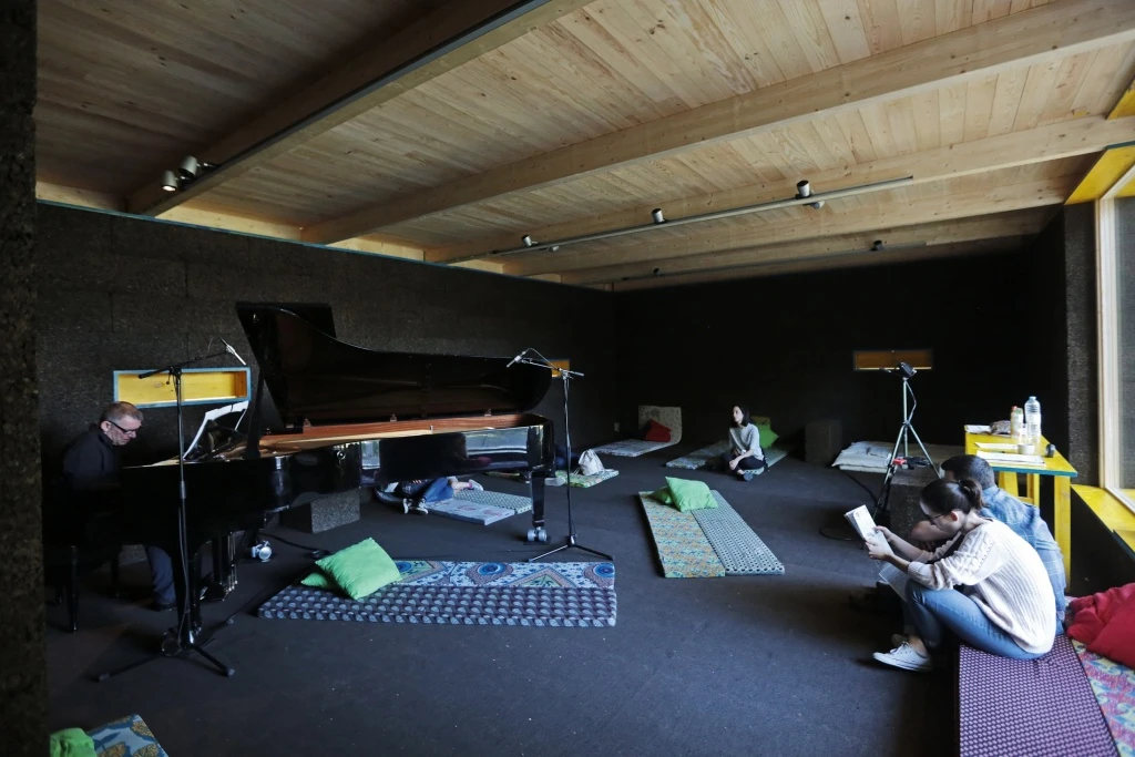 O artista Ricardo Jacinto criou uma residência temporária de cortiça que será habitada por Marino Formenti, que ali se senta ao piano, toca, dorme, come e vive. Sobre o projeto arquitetónico, Ricardo Jacinto explica que “surge de um convite para desenhar uma habitação temporária para performance do pianista Marino Formenti.”